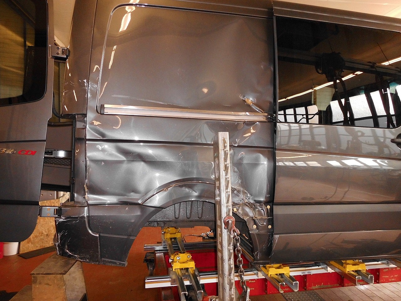 Das Ergebnis der fachmännischen Reparatur kann sich sehen lassen. Der Sprinter ist nun für unseren Hol- und Bringdienst zuständig.