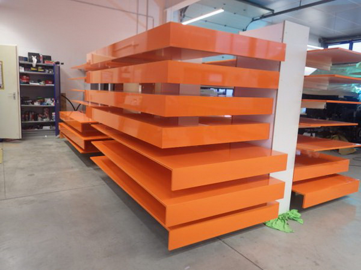 Auch Lackierarbeiten anderer Art werden von uns durchgeführt. Hier haben wie Tischlerplatten für den Messestand eines Kunden vorbereitet: