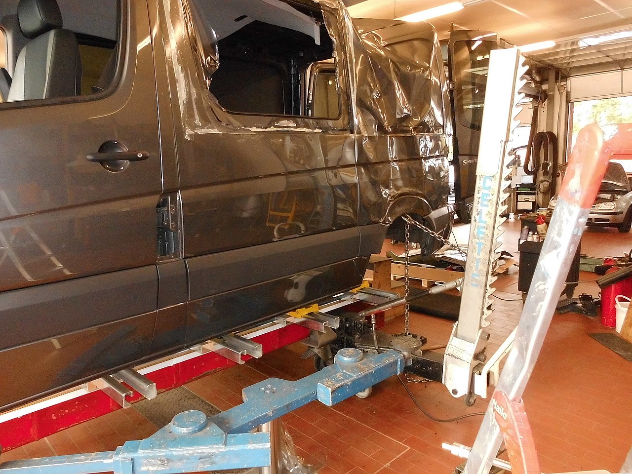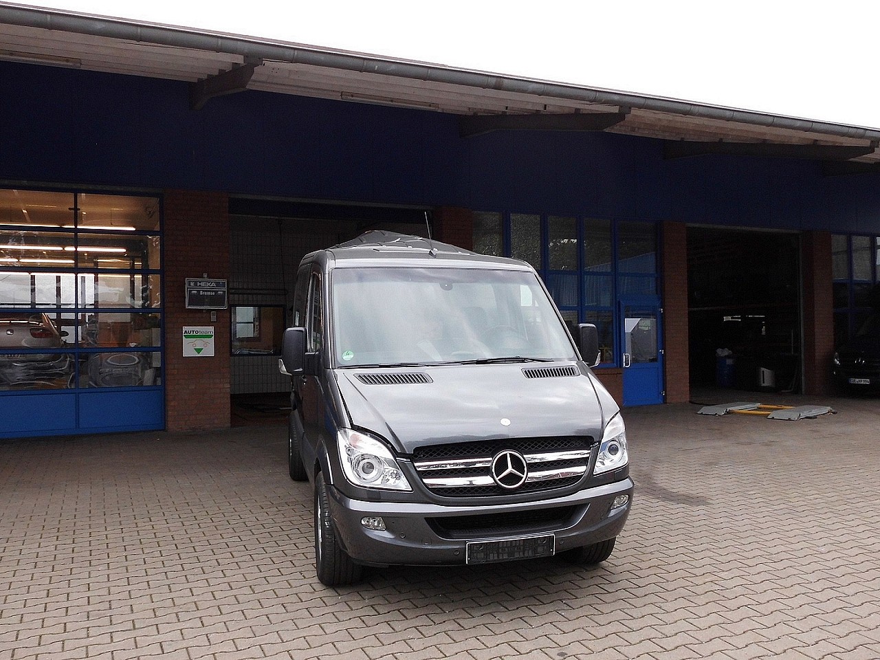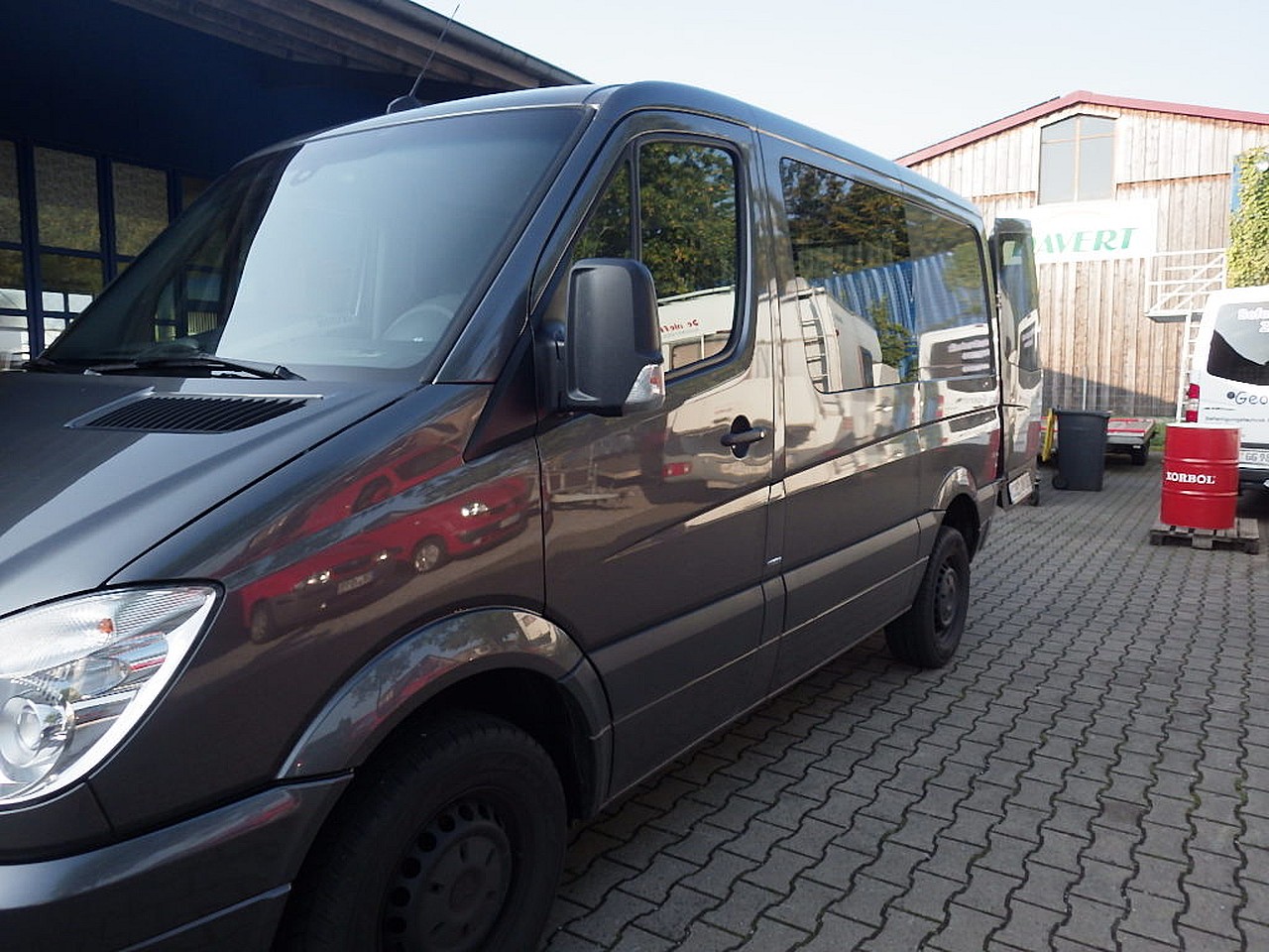 Das Ergebnis der fachmännischen Reparatur kann sich sehen lassen. Der Sprinter ist nun für unseren Hol- und Bringdienst zuständig.
