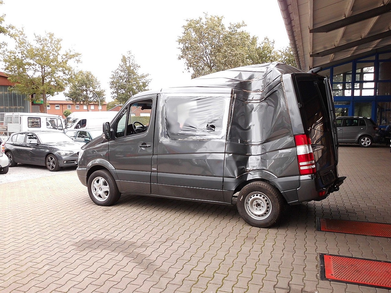 Nach dem Unfall mit einem angehängten Wohnwagen sah der Sprinter zunächst so aus: