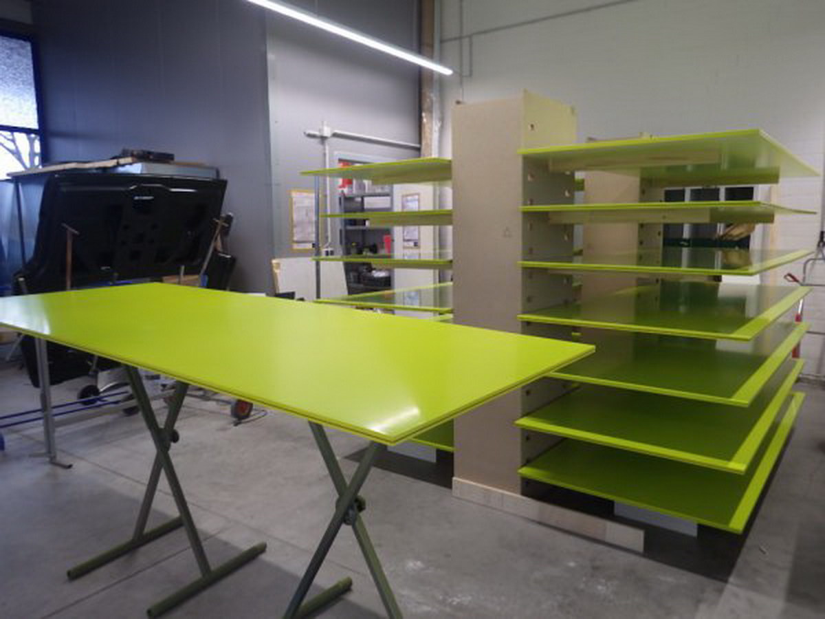Auch Lackierarbeiten anderer Art werden von uns durchgeführt. Hier haben wie Tischlerplatten für den Messestand eines Kunden vorbereitet: